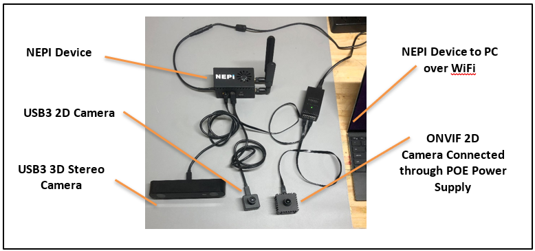 3) 1x or more NEPI supported imaging sensors. This tutorial uses an USB3 2D camera, a USB3 Stereo Camera, and an ONVIF IP camera.