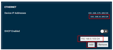 Example: If you IP light system chas a factory set IP address of 192.168.0.150 with netmask 255.255.255.0 (24 in short form), open our NEPI device's RUI SYSTEM/ADMIN tab and add a different IP address value on that same submask like 192.168.0.103/24. After accepting the new IP alias, you will see it appear in the "Device IP Addresses" List above the entry box.